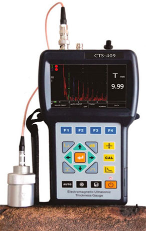 The CTS-409 is a portable electromagnetic ultrasonic instrument (known as “EMAT”) designed to be used without couplant or direct contact on magnetic metal materials. Regardless of the condition of the object surface, it can be applied to oxidized items such as oil pipes or aircraft parts.